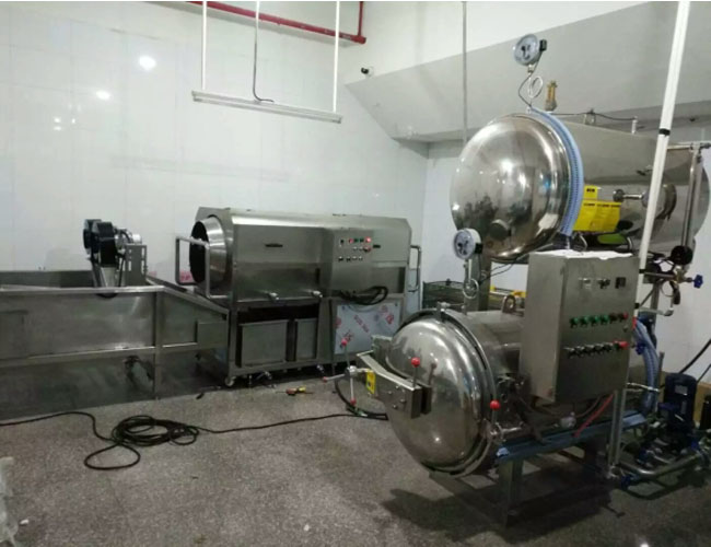 杭州客戶洗袋風干流水線和殺菌鍋安裝現(xiàn)場