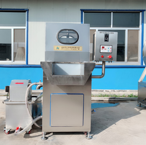 鹽水注射機(jī)是將鹽水或者腌制料注入產(chǎn)品中,使產(chǎn)品能快速的充分腌制,縮短產(chǎn)品的腌制時(shí)間,提高產(chǎn)品的出品率,降低勞動(dòng)強(qiáng)度,提高工作效率,增大產(chǎn)量,大部分產(chǎn)品配合滾揉機(jī)使用效果更佳。