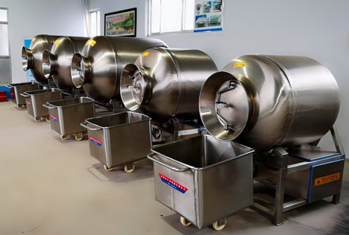 產(chǎn)品在滾揉機(jī)真空狀態(tài)下滾揉會(huì)使產(chǎn)品在摩擦、摔打時(shí)減少熱量的產(chǎn)生,而且肉制品在真空狀態(tài)下不會(huì)氧化,不會(huì)使產(chǎn)品在滾揉過(guò)程中變質(zhì),還可以可以抑制微生物的生長(zhǎng)繁殖。