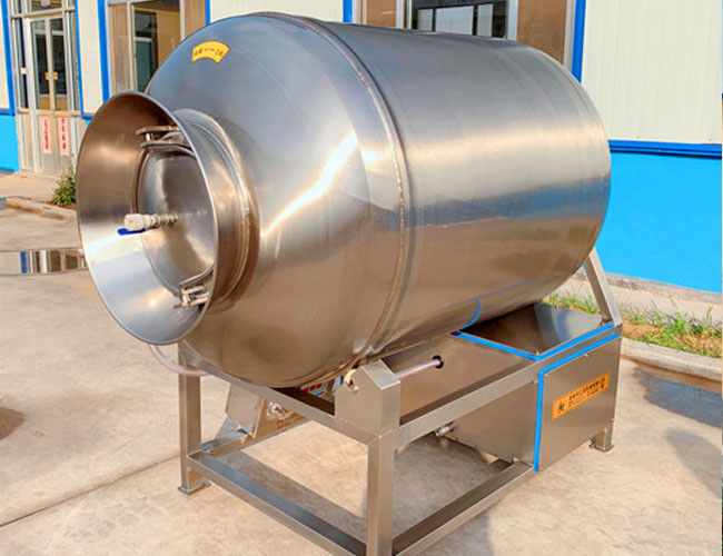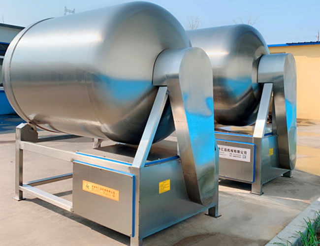 真空滾揉機(jī)是食品廠家用來(lái)生產(chǎn)肉食制品、調(diào)理品、魚(yú)類、海鮮類、休閑食品類等產(chǎn)品的主要加工設(shè)備,他的用途是將嫩化后的原料通過(guò)滾揉,與輔料、添加劑等在真空狀態(tài)下拌合均勻,快速的充分吸收,縮短腌制時(shí)間,提高出品率(備注:物料在真空狀態(tài)下呈現(xiàn)膨脹的狀態(tài))。