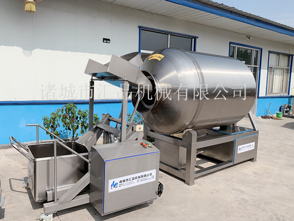 1、整雞真空滾揉機(jī)可以起到破壞肉的組織結(jié)構(gòu),使肉質(zhì)松軟的作用。因?yàn)殡缰坪?、滾揉前的肉塊特征為:質(zhì)地較硬,(比腌制前還要硬),可塑性差,肉塊間有間隙,黏結(jié)不牢。經(jīng)過肉制品真空滾揉機(jī)滾揉后,原組織結(jié)構(gòu)受破壞,部分纖維斷裂,肌肉松弛,質(zhì)地柔軟,可塑性強(qiáng),肉塊間結(jié)合緊密。