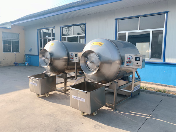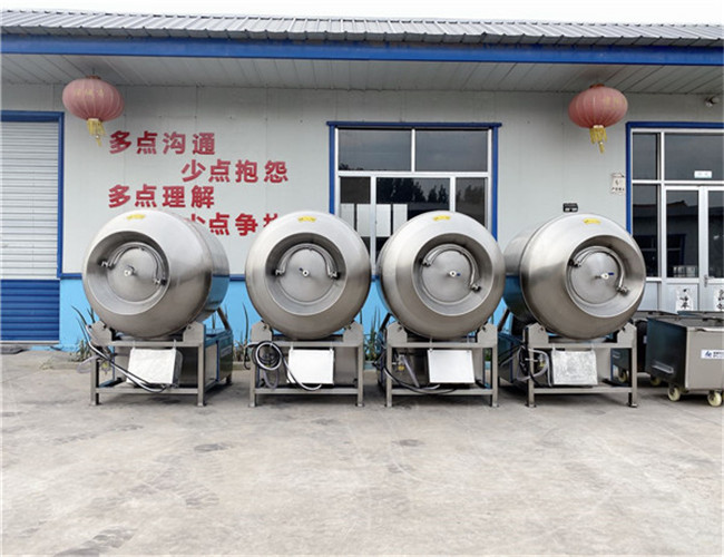真空滾揉機(jī)是在真空狀態(tài)下,利用物理沖擊的原理,使肉產(chǎn)品在滾筒內(nèi)上下翻動(dòng),相互撞擊、摔打,達(dá)到腌漬作用,使肉均勻的吸收腌漬,提高肉的結(jié)著力及產(chǎn)品的彈性,通過(guò)滾揉能使肉體蛋白質(zhì)分解成水溶性蛋白,易被人體吸收,同時(shí)能使添加料(淀粉等)與肉體蛋白質(zhì)互為融合以達(dá)到肉質(zhì)變嫩,口感好,出品率高。本機(jī)具有肺呼吸功能,讓產(chǎn)品在滾筒內(nèi)膨脹、縮小做往復(fù)運(yùn)動(dòng),改善了肉組織的效果。