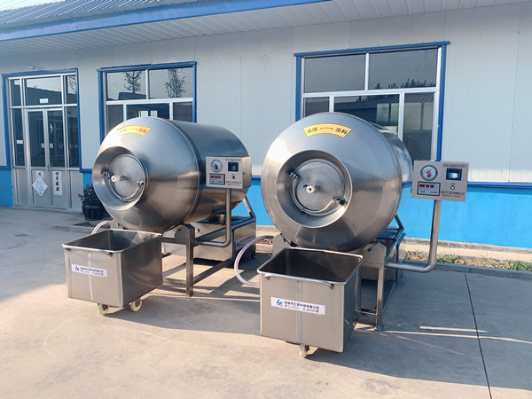 真空滾揉機(jī)是在真空狀態(tài)下,利用物理沖擊的原理,使肉產(chǎn)品在滾筒內(nèi)上下翻動(dòng),相互撞擊、摔打,達(dá)到按摩、腌漬作用,使肉均勻的吸收腌漬,提高肉的結(jié)著力及產(chǎn)品的彈性,通過(guò)滾揉、按摩能使肉體蛋白質(zhì)分解成水溶性蛋白,易被人體吸收,同時(shí)能使添加料(淀粉等)與肉體蛋白質(zhì)互為融合以達(dá)到肉質(zhì)變嫩,口感好,出品率高。本機(jī)具有肺呼吸功能,讓產(chǎn)品在滾筒內(nèi)膨脹、縮小做往復(fù)運(yùn)動(dòng),改善了肉組織的效果。