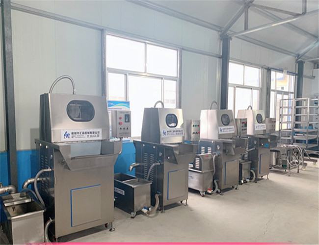 鹽水注射機是將鹽水注入肉中充分腌漬,注入配制的水溶液的肉塊能使肉質(zhì)嫩化,松軟,提高了肉制品的品位和出品率。可根據(jù)不同工藝要求,調(diào)整步進速度,步進距離,壓肉板間隙及注射壓力,將腌漬液均勻連續(xù)地注入肉中,達到理想的注射效果。優(yōu)良的產(chǎn)品、完善的服務(wù)、良好的信譽成為匯品成功的主要要素。真誠希望匯品的設(shè)備能幫助您生產(chǎn)出美味的食品,為您的企業(yè)帶來可觀的效益。