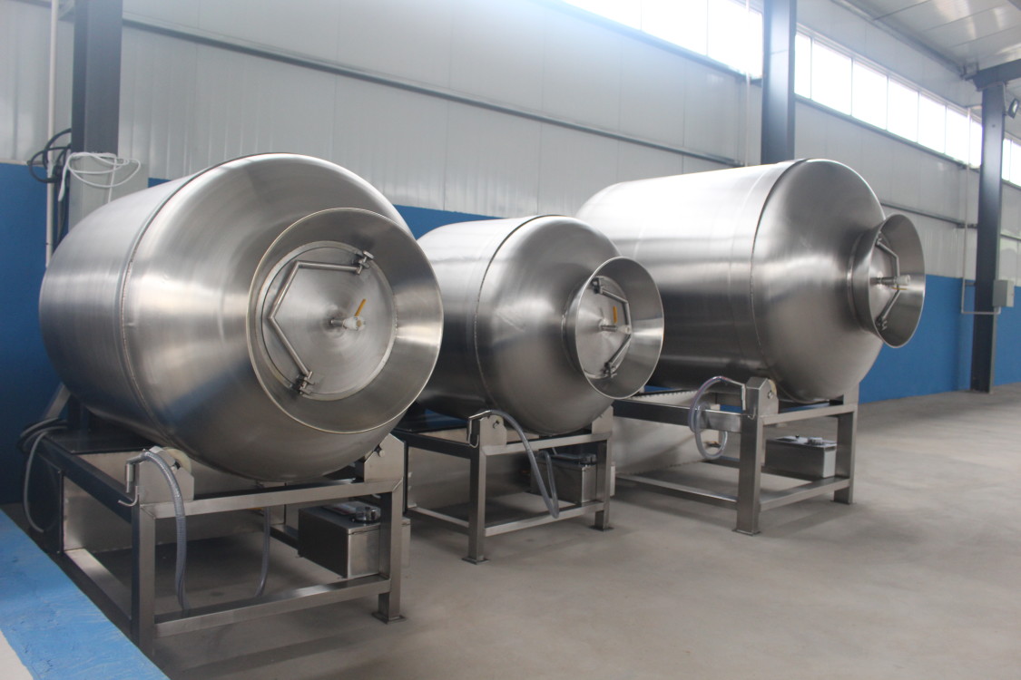 真空滾揉機(jī)的原理是:可進(jìn)行肉類真空腌制、牛肉真空腌制,羊肉真空腌制,雞肉真空腌制,鴨肉真空腌制,鵝肉真空腌制,豬肉真空腌制,魚肉真空腌制,蛋真空腌制及蔬菜真空腌制、果品等物品在真空狀態(tài)內(nèi),可提高調(diào)味品進(jìn)入肉品的速度,并保持肉內(nèi)的水分。另外真空狀態(tài)能對食物一定程度的保鮮。蔬菜水果經(jīng)過腌制后,口味純正均勻,色澤鮮亮,增加產(chǎn)品競爭力。蛋經(jīng)過腌制后,可成為咸鴨蛋、咸雞蛋、咸鵝蛋、咸鵪鶉蛋或者五香蛋。肉制品可以通過適當(dāng)?shù)霓D(zhuǎn)動,攪拌食品,有規(guī)律地拍打食品,所謂“按摩作用”“真空作用”能增加食品的含水量,令食品增加風(fēng)味,更柔軟,更可口,更好賣。本機(jī)采用食品衛(wèi)生設(shè)計,材料選進(jìn)口不銹鋼優(yōu)質(zhì)板材,確保衛(wèi)生清潔。關(guān)鍵部件全部采用進(jìn)口品牌部件,確保耐用可靠。真空滾揉腌制機(jī)的規(guī)格有多種型號。適合不同肉類加工場和快餐連鎖店使用。該機(jī)還適用于各類禽肉制品;分割禽肉制品;大塊肉食制品;各種西式火腿類原料肉的腌制。由于采用真空腌制,大大縮短了腌制時間,而且使肉塊充分吸收鹽水,使蛋白質(zhì)溶解。這樣不僅使肉的結(jié)構(gòu)松馳,達(dá)到嫩化效果,而且改善了肉的外觀和提高了出品率。 真空滾揉機(jī)設(shè)備使用需要注意的問題 1、機(jī)器在使用前,應(yīng)用清水沖洗潔凈,并空載運(yùn)轉(zhuǎn)5分鐘,檢查各轉(zhuǎn)動部件、真空泵是否正常工作。確信各部件工作后方可加料,加料完畢上蓋,打開真空泵啟動開關(guān),真空泵開,由電接點(diǎn)真空表的設(shè)定范圍自動控制,按滾揉操作要求開啟滾揉開關(guān)。 2、每次滾揉結(jié)束后,需用清水沖洗干凈,并按出料按鈕筒體正轉(zhuǎn),放棄污水,以保證筒體內(nèi)不存留殘物